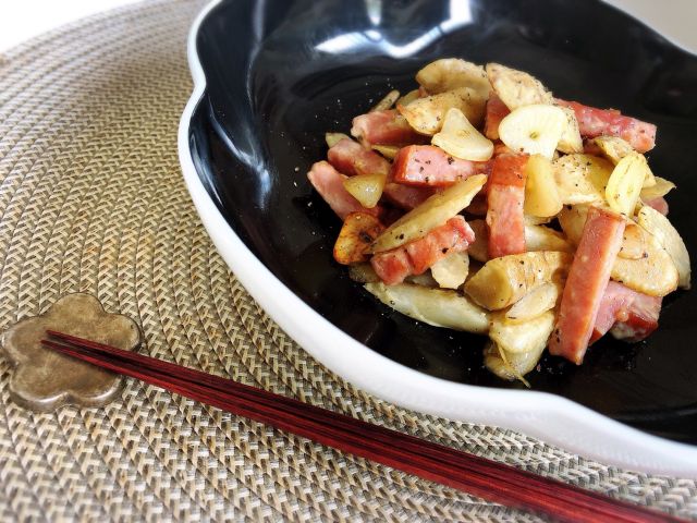 ゴボウとベーコンのガーリックマヨネーズサラダ